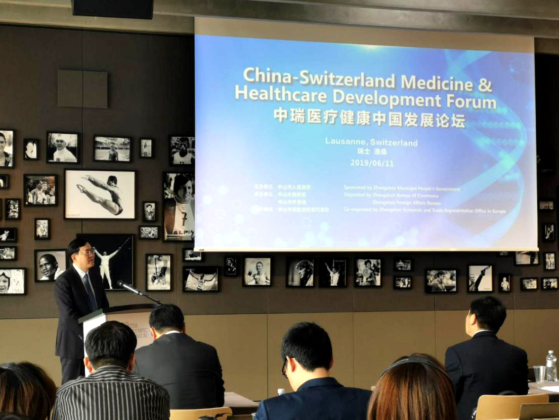 在瑞士洛桑市,由中山市人民政府主辦,中山市商務(wù)局、中山駐歐洲經(jīng)貿(mào)代表處承辦的“中山中瑞醫(yī)療健康中國發(fā)展論壇”上,陳旭東書記在致辭中表示,當(dāng)前,中山正按照《粵港澳大灣區(qū)發(fā)展規(guī)劃綱要》要求,大力推進(jìn)生物醫(yī)藥科技國際合作創(chuàng)新區(qū)建設(shè),努力打造生物醫(yī)藥研發(fā)和制造基地、國際高端醫(yī)療和科技服務(wù)集聚區(qū)、健康領(lǐng)域高層次國際交流合作平臺;希望以“一帶一路”、粵港澳大灣區(qū)建設(shè)為契機(jī),與瑞士政商學(xué)界開展多層次、多維度、多領(lǐng)域的合作,借助瑞士全球領(lǐng)先的科研能力、高新技術(shù),走出一條創(chuàng)新協(xié)同、資源共享、優(yōu)勢互補(bǔ)的開放合作之路,助推我市健康醫(yī)藥產(chǎn)業(yè)高質(zhì)量發(fā)展。在互動交流環(huán)節(jié)余從洪介紹了中山數(shù)字化醫(yī)療發(fā)展情況和生物醫(yī)藥產(chǎn)業(yè)發(fā)展現(xiàn)狀,表達(dá)了期望與瑞士生命科學(xué)企業(yè)加強(qiáng)交流,促進(jìn)創(chuàng)新成果與加速項目落地中山。論壇簽約儀式活動上,健康基地與瑞士維生素研究所簽署了合作備忘錄,雙方將在維生素檢測與技術(shù)研發(fā)、產(chǎn)品認(rèn)證、舉辦學(xué)術(shù)活動等方面展開合作,在中國人群維生素健康攝入、健康管理等方面合作展開研究。