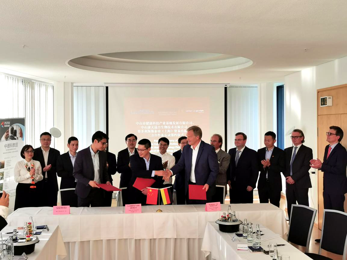 在德國海德堡市中德科技大廈,中山市與中德科技園控股有限公司聯(lián)合舉辦了“中山遇見海德堡”企業(yè)交流座談會及項目簽約儀式,中山市委書記陳旭東、市商務(wù)局局長林偉強(qiáng)、市外事局局長黃識航、翠亨新區(qū)管委會副主任許行等中山代表團(tuán)成員以及中德科技園控股有限公司董事長周松波、德國賽多利斯公司、完美公司、康晟生物、百多力公司、KIMED等企業(yè)參會。陳旭東書記向與會客商推介了中山市投資環(huán)境,表達(dá)了加強(qiáng)與德國生命科學(xué)企業(yè)加強(qiáng)合作的愿望,周松波詳細(xì)介紹了海德堡中德科技園促進(jìn)中國與德國合作的職能與合作模式,隨后在陳旭東書記等領(lǐng)導(dǎo)的見證下,健康基地、中山康晟生物公司與德國賽多利斯公司三方簽署了合作共建QbD實驗室和生物藥CDMO平臺的合作備忘錄。三方合作建設(shè)的生物藥CDMO平臺將首創(chuàng)運用QbD理念(Quality by Design即質(zhì)量源于設(shè)計)開展生物藥CDMO服務(wù),建成后將為國內(nèi)外生物藥企業(yè)提供工藝開發(fā)、蛋白抗體生物藥商業(yè)化生產(chǎn)服務(wù)。簽約會上,中德科技園控股有限公司與完美(中國)有限公司簽訂了戰(zhàn)略合作協(xié)議,雙方將就技術(shù)成果轉(zhuǎn)化、對接歐洲創(chuàng)新資源展開深度合作。