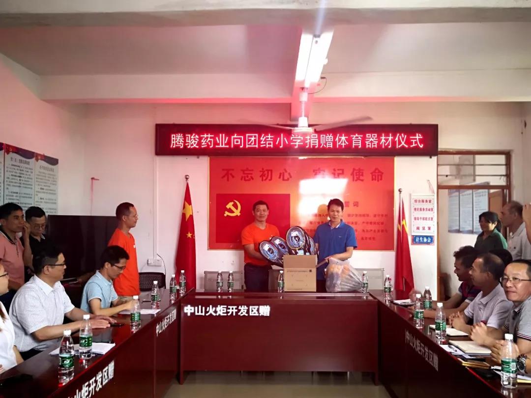 最后,健康基地園區(qū)企業(yè)——騰駿藥業(yè)向團結(jié)小學(xué)捐贈羽毛球、乒乓球等一批體育器材,豐富學(xué)生課余生活,增強體魄。
