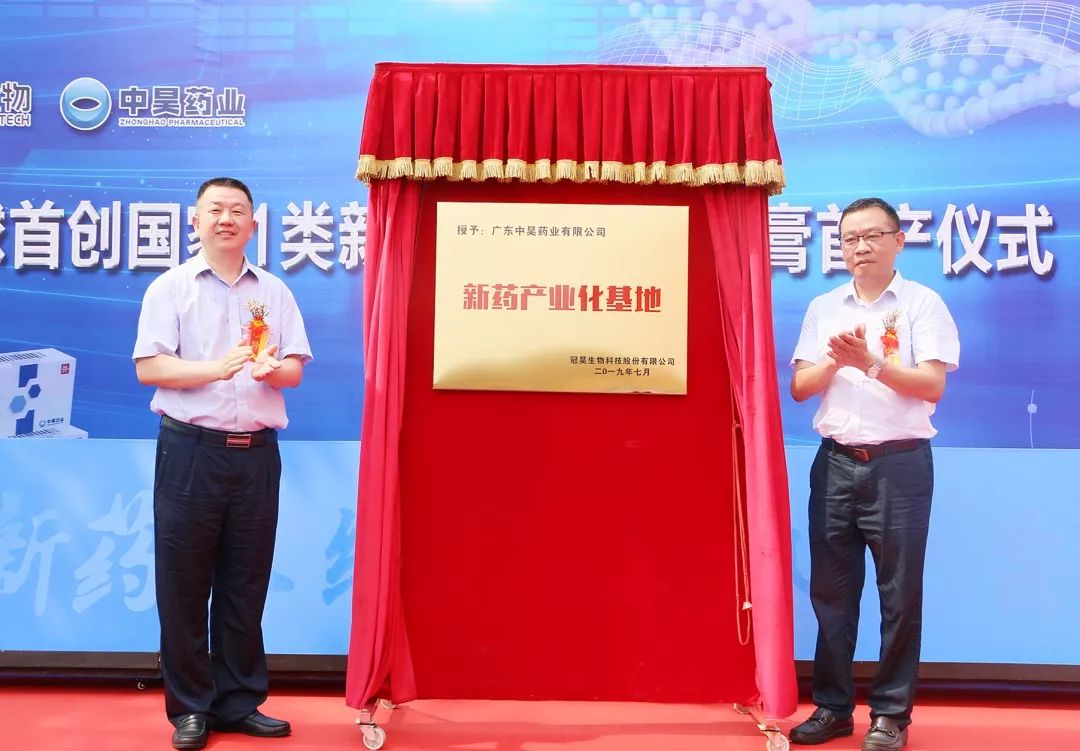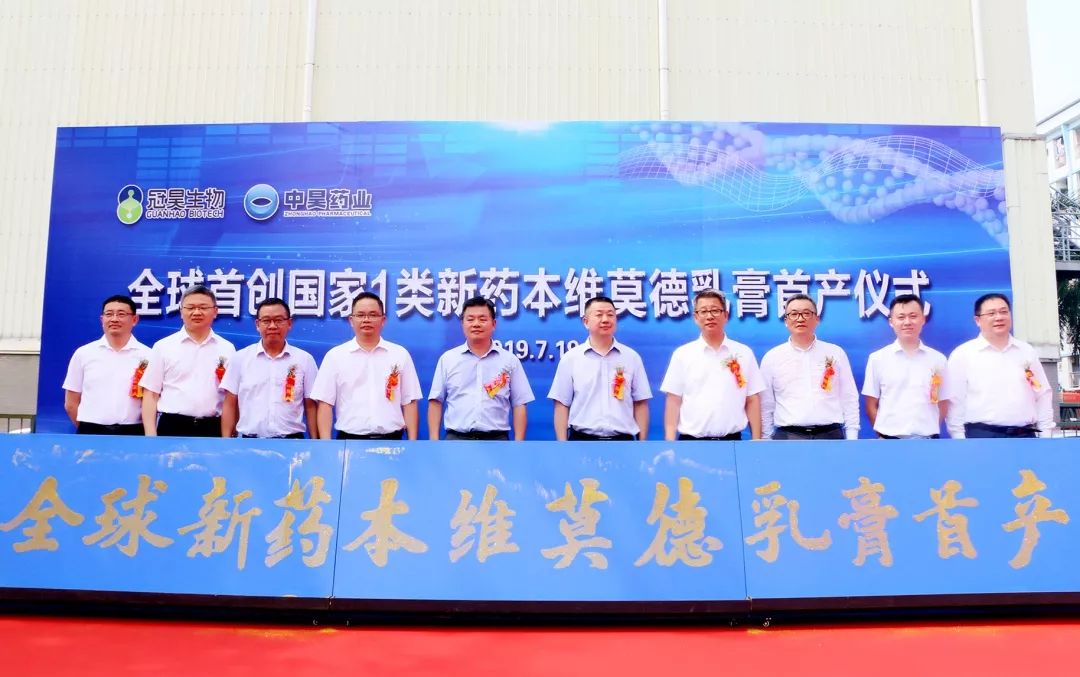 2019年7月19日上午,“全球首創(chuàng)國家1類新藥本維莫德乳膏首產(chǎn)”儀式在國家健康基地園區(qū)企業(yè)——廣東中昊藥業(yè)有限公司(以下簡稱“中昊藥業(yè)”)隆重舉行,這標(biāo)志著我國建國70年來第一個皮膚領(lǐng)域first-in-class的化學(xué)創(chuàng)新藥投產(chǎn)上市!
