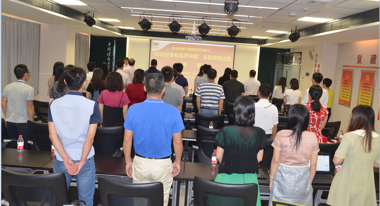 ▲全員起立及合唱國歌  此次演講比賽由國家健康基地黨委、開發(fā)區(qū)團(tuán)工委主辦,健康基地工聯(lián)會(huì)、健康基地兩新黨支部及健康基地團(tuán)委協(xié)辦,是健康基地“喜迎建國70周年”系列活動(dòng)之一。在8月29日舉辦的初賽中,來自園區(qū)10個(gè)企業(yè)的21名選手最終有12名進(jìn)入決賽。