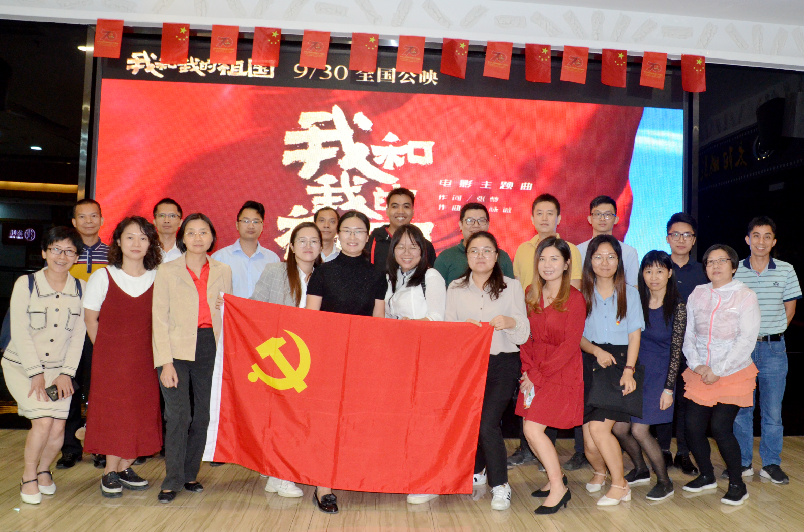 當天下午,健康基地黨支部開展了主題黨日活動,聯(lián)合工會組織廣大黨員干部及職工觀看愛國主義教育片《我和我的祖國》, 該影片作為祖國70周年的獻禮電影,展現(xiàn)了各行各業(yè)平凡與不平凡的奮斗者在不同領域為祖國所做出的貢獻,彰顯著人民的愛國之情、報國之志。觀影后,黨員們紛紛表示,在大時代背景下,我們一定堅守“初心”,時刻牢記新時代的“使命”,克服發(fā)展中遇到的各種困難,迎接挑戰(zhàn),為中山健康產業(yè)的發(fā)展做出更加積極的貢獻。