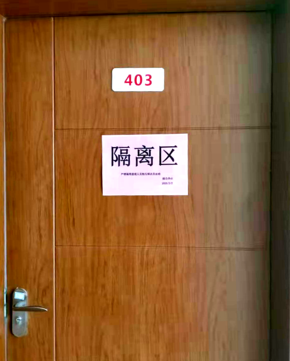 目前,可可康公司實行封密式管理,進入廠區(qū)人員需有通行證,一人一證。 宿舍設置了整層樓作為隔離區(qū),隔離區(qū)有20間,隔離區(qū)配備齊全了生活所需的物品,并有專人管理及送餐等。