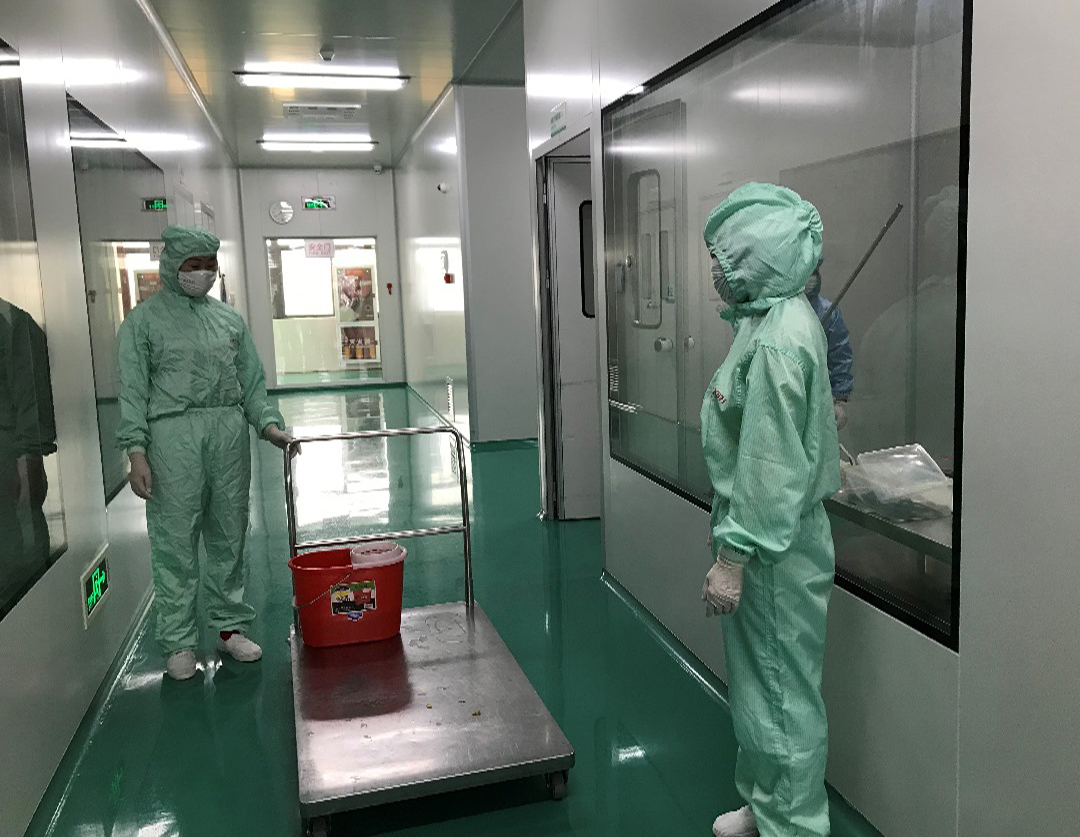 生產區(qū)清潔規(guī)范要求清潔人員每天對制劑、提取大樓(樓梯,一般區(qū)更衣通道)進行清潔和消毒,每天上午、下午各一次,手接觸地方重點消毒(如門把手、打卡機)。車間人員嚴禁乘坐電梯,只有物料可通過電梯運輸,電梯按鍵每小時用75%乙醇消毒一次。所有物料進入車間按規(guī)定進行清潔消毒,自凈時間30分鐘。