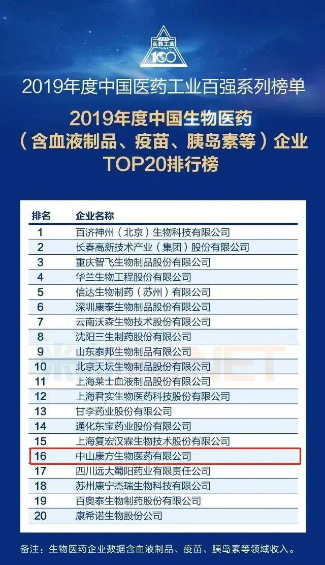 其中,國家健康基地園區(qū)企業(yè)中山康方生物醫(yī)藥有限公司位列“中國生物醫(yī)藥(含血液制品、疫苗、胰島素等)企業(yè)TOP20排行榜”第16名;中山市中智藥業(yè)集團有限公司位列“中國中藥企業(yè)TOP100排行榜”第74名。