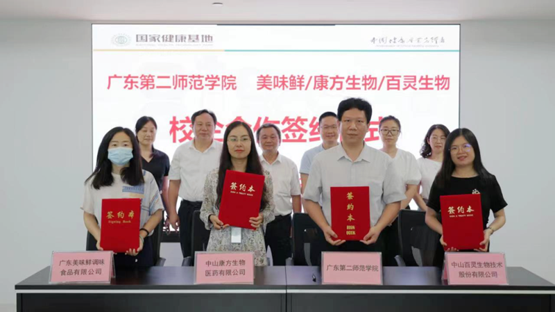 會上,中山港街道黨工委委員何志峰,健康基地總經(jīng)理助理王賀年,廣東第二師范學(xué)院黨委副書記、校長廖偉群及黨委常委、副校長馬駿等一行,與美味鮮、康方生物、百靈生物、國安火炬、君厚生物等6家健康基地園區(qū)企業(yè)代表進行了互動交流。隨后,廣東第二師范學(xué)院分別與健康基地集團、美味鮮、康方生物、百靈生物進行簽約儀式,共建廣東第二師范學(xué)院實踐教學(xué)基地,將在探索校企聯(lián)合培養(yǎng)創(chuàng)新型和應(yīng)用型人才的新模式、構(gòu)建適應(yīng)社會需求及企業(yè)發(fā)展需求的人才輸送渠道、達成就業(yè)招聘和技術(shù)培訓(xùn)等方面開展更廣泛的合作。