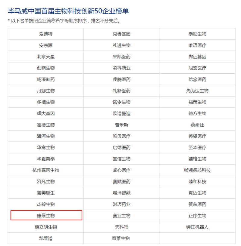 近日,畢馬威中國發(fā)布了“2022年首屆生物科技創(chuàng)新50企業(yè)”榜單,中山康天晟合生物技術有限公司(以下簡稱“康晟生物”)榜上有名。