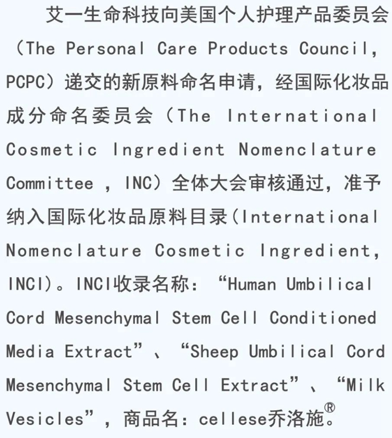 此次INCI的批準(zhǔn)許可申請,艾一生命科學(xué)憑借嚴(yán)苛的產(chǎn)品標(biāo)準(zhǔn)、卓越的質(zhì)量水平及安全有效等多重優(yōu)勢,歷經(jīng)重重驗證審核終獲成功,吸引了全球醫(yī)學(xué)界的關(guān)注。艾一生命科技計劃將為全球提供人臍帶間充質(zhì)干細胞外囊泡的原料及相關(guān)功效化妝品,讓更多人受益于喬洛施的皮膚再生和防止老化。此次獲批,也得益于艾一生命科技科研團隊的潛心研究、不懈創(chuàng)新,彰顯了其團隊在人臍帶間充質(zhì)干細胞外囊泡科研領(lǐng)域的“硬核”實力。