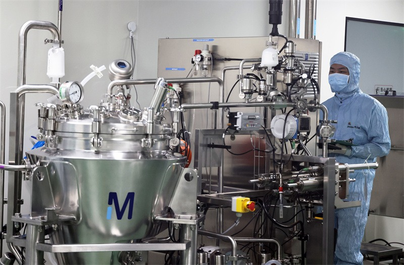 4月18日,記者來到位于火炬開發(fā)區(qū)健康基地的康方生物進(jìn)行實(shí)地采訪。進(jìn)入康方生物研發(fā)生產(chǎn)車間走廊,透過嚴(yán)實(shí)的玻璃窗可以看到,一臺臺精密的儀器正在工作著,規(guī)律晃動的培養(yǎng)液、鮮有工作人員的生產(chǎn)線……無不昭示著這是先進(jìn)的數(shù)字化智能生產(chǎn)車間。