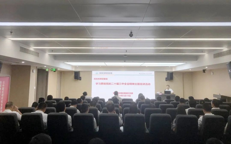 9月19日,健康基地集團園區(qū)黨委開展學習貫徹黨的二十屆三中全會精神專題宣講,深入學習貫徹習近平總書記在黨的二十屆三中全會上的重要講話精神和全會精神,引導集團上下學深悟透全會精神,更好把握進一步全面深化改革的豐富內(nèi)涵和精神實質(zhì),切實把學習成果轉(zhuǎn)化為推動園區(qū)產(chǎn)業(yè)發(fā)展的強大動力和實際行動。健康基地集團黨員干部、園區(qū)兩新黨組織書記、黨員代表參加此次活動。