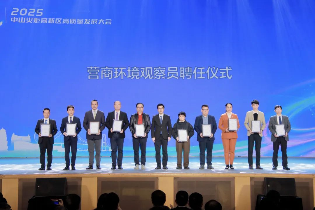 會(huì)議頒發(fā)了火炬區(qū)“招商大使”“營(yíng)商環(huán)境觀察員”聘書(shū),其中健康基地園區(qū)企業(yè)代表分別占8名和3名。