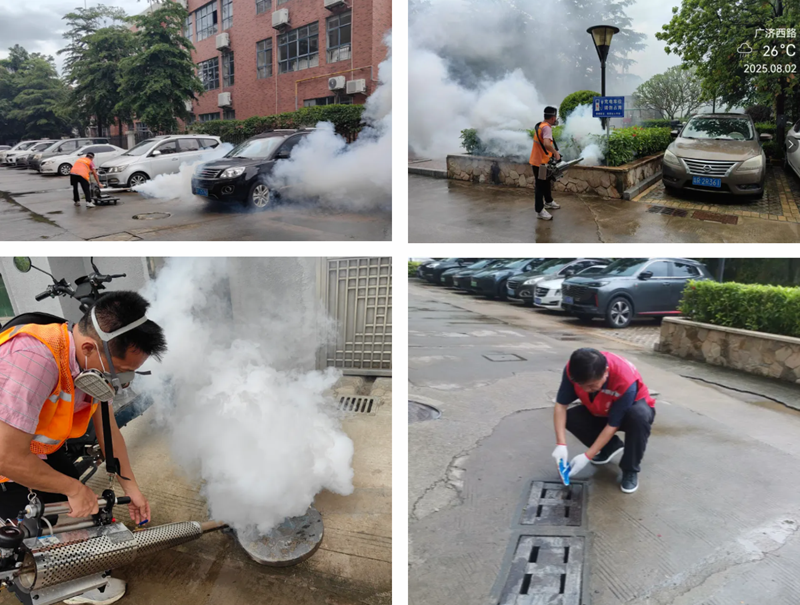 利用周末人少時(shí)段,健康基地專業(yè)消殺小隊(duì)再次來到智匯園、生物谷、灣區(qū)藥谷2號(hào)、電子城廠區(qū)、A區(qū)/B區(qū)廠房、聯(lián)東廠區(qū)、張一村/張三村代管物業(yè),聚焦車庫、排水溝、綠化帶、垃圾堆放處等重點(diǎn)蚊蟲孳生地,系統(tǒng)開展管網(wǎng)疏通、積水清除作業(yè)、科學(xué)投放預(yù)防性藥劑,從源頭降低蚊蟲密度。在園區(qū)人群活動(dòng)區(qū)域,重點(diǎn)消殺標(biāo)志廣場(chǎng)、籃球場(chǎng)、幼兒園、A區(qū)/B區(qū)宿舍、中心區(qū)宿舍的樓梯、器材、空調(diào)管道等死角,并在垃圾站周邊噴灑緩釋型殺蟲顆粒劑,為園區(qū)企業(yè)員工和社區(qū)居民構(gòu)筑起一道堅(jiān)實(shí)的公共衛(wèi)生屏障。