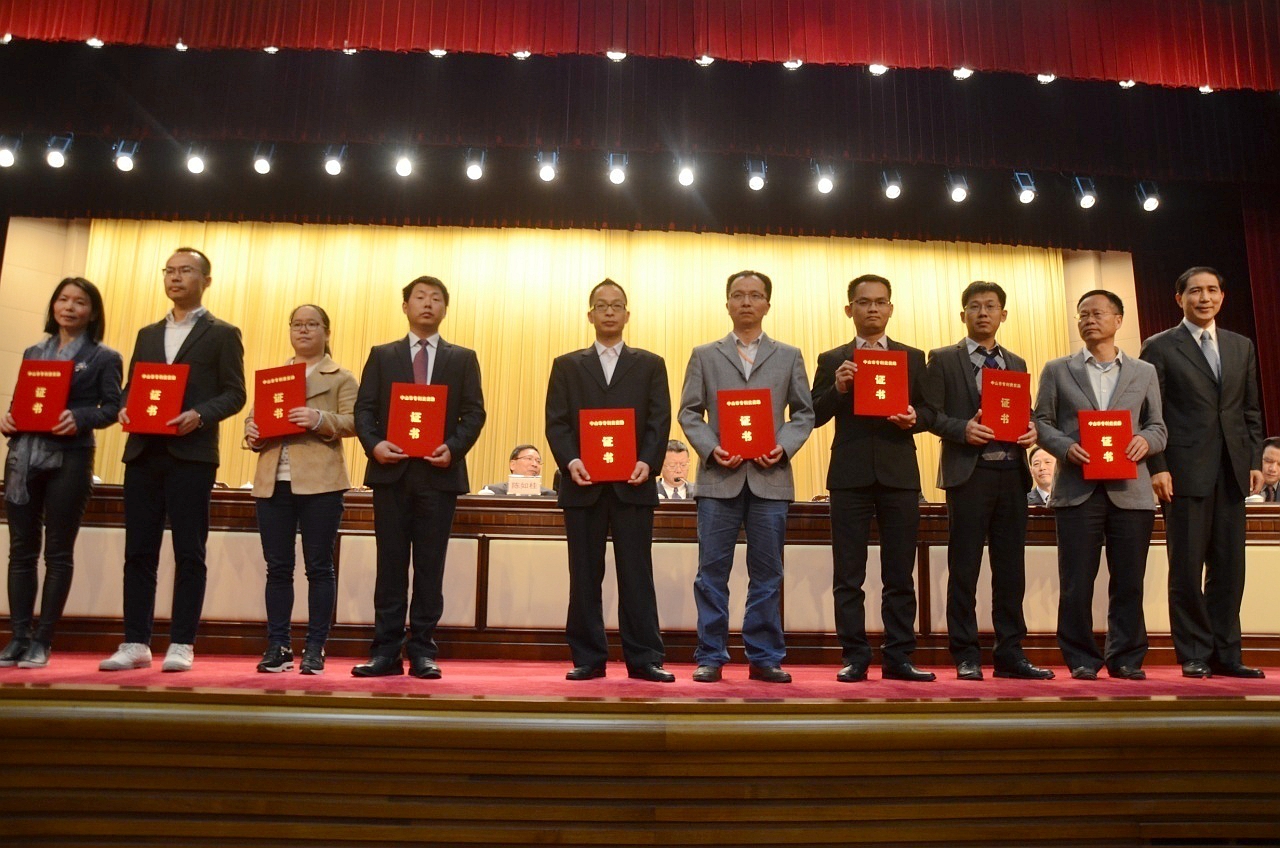 焦蘭生市長為“中山市科學(xué)技術(shù)進(jìn)步獎一等獎”獲獎單位頒獎