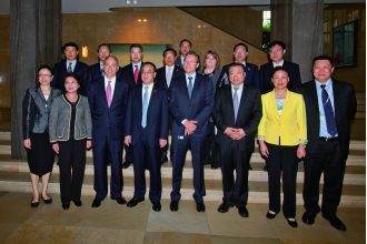 2013年7月,廣東省委書記胡春華帶隊訪問山德士制藥母公司-瑞士諾華公司總部。