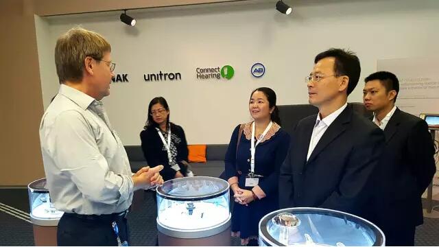 瑞士當(dāng)?shù)貢r(shí)間10月20日下午,中山市副市長(zhǎng)楊文龍帶隊(duì)考察了瑞士Sonova公司,市食藥監(jiān)局副局長(zhǎng)曾德強(qiáng)、國(guó)家健康基地副總經(jīng)理林霞等隨隊(duì)考察。