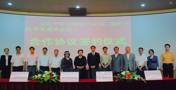 吳階平醫(yī)學(xué)產(chǎn)業(yè)園正式“落戶”火炬區(qū)“吳階平醫(yī)學(xué)獎(jiǎng)?lì)C獎(jiǎng)活動(dòng)”合作協(xié)議昨在該區(qū)同時(shí)簽訂