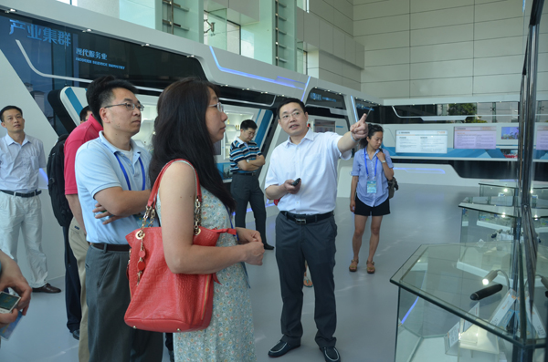 在參觀考察健康基地期間,健康基地負(fù)責(zé)人詳細(xì)介紹了園區(qū)目前的產(chǎn)業(yè)結(jié)構(gòu)、服務(wù)平臺、創(chuàng)新團隊和市區(qū)共建現(xiàn)代服務(wù)業(yè)集聚區(qū)。專家代表們對健康基地?fù)碛械牧己玫乩韰^(qū)位、成熟的產(chǎn)業(yè)環(huán)境產(chǎn)生了極大的興趣,隨后就相關(guān)合作事宜展開了交流。