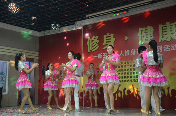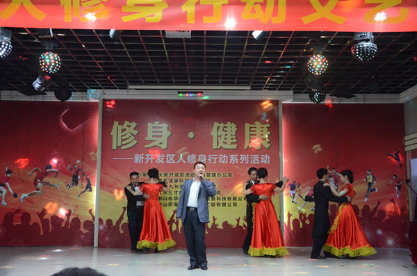 修身健康晚會(huì)節(jié)目?jī)?nèi)容豐富、精彩紛呈。精彩的節(jié)目由國(guó)家健康基地園區(qū)企業(yè)九州通、三才醫(yī)藥、海濟(jì)醫(yī)藥、華志科技和火炬開(kāi)發(fā)區(qū)藝術(shù)團(tuán)共同演繹,顯現(xiàn)了國(guó)家健康基地和新開(kāi)發(fā)區(qū)人良好的精神風(fēng)貌,積極參與全民修身活動(dòng)。會(huì)上,谷德慶主任向新開(kāi)發(fā)區(qū)人提出了倡議;健康基地領(lǐng)導(dǎo)也向基地園區(qū)企業(yè)發(fā)出了積極投身修身行動(dòng)的號(hào)召;開(kāi)發(fā)區(qū)百佳代表宣讀了《人人修身 個(gè)個(gè)給力——新開(kāi)發(fā)區(qū)人修身倡議書(shū)》!冻h書(shū)》中,開(kāi)發(fā)區(qū)流動(dòng)人口管理辦公室向全區(qū)所有新開(kāi)發(fā)區(qū)人發(fā)出倡議:從自身做起,從小事做起;做“四有”新開(kāi)發(fā)區(qū)人;弘揚(yáng)社會(huì)正氣,引領(lǐng)文明風(fēng)尚。當(dāng)晚,代表新開(kāi)發(fā)區(qū)人修身系列行動(dòng)的修身健康、修身普惠、修身奉獻(xiàn)、修身低碳、修身共融共五個(gè)代表隊(duì)的人員上臺(tái)作了展示。晚會(huì)最后舉行了新開(kāi)發(fā)區(qū)人修身系列行動(dòng)的啟動(dòng)儀式,由劉少山副書(shū)記宣布新開(kāi)發(fā)區(qū)人修身系列行動(dòng)正式啟動(dòng)。拉開(kāi)了新開(kāi)發(fā)區(qū)人修身行動(dòng)的序幕!