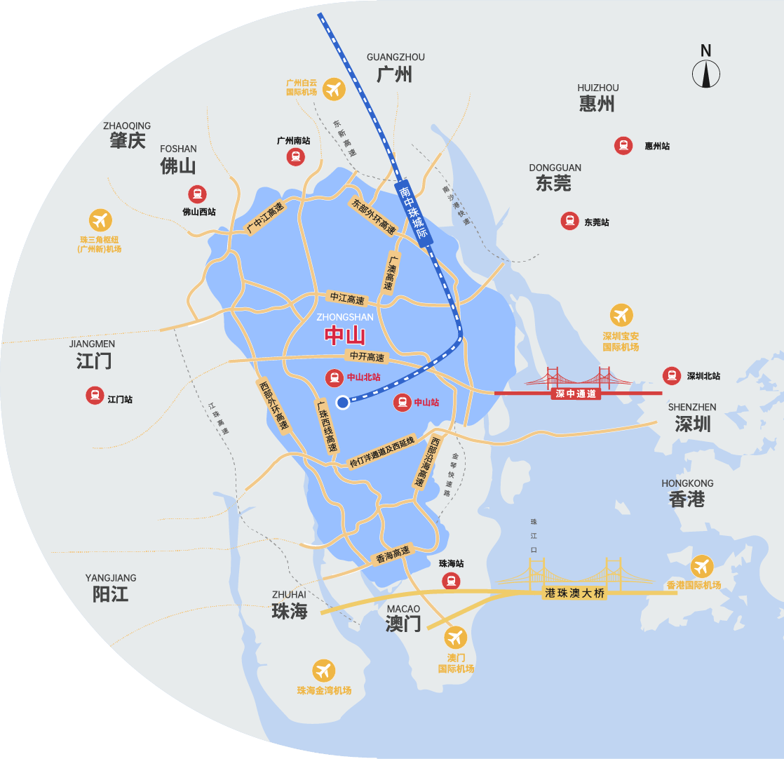 中山市位于廣東省中南部,珠江三角洲中部偏南的西江、北江下游出海處